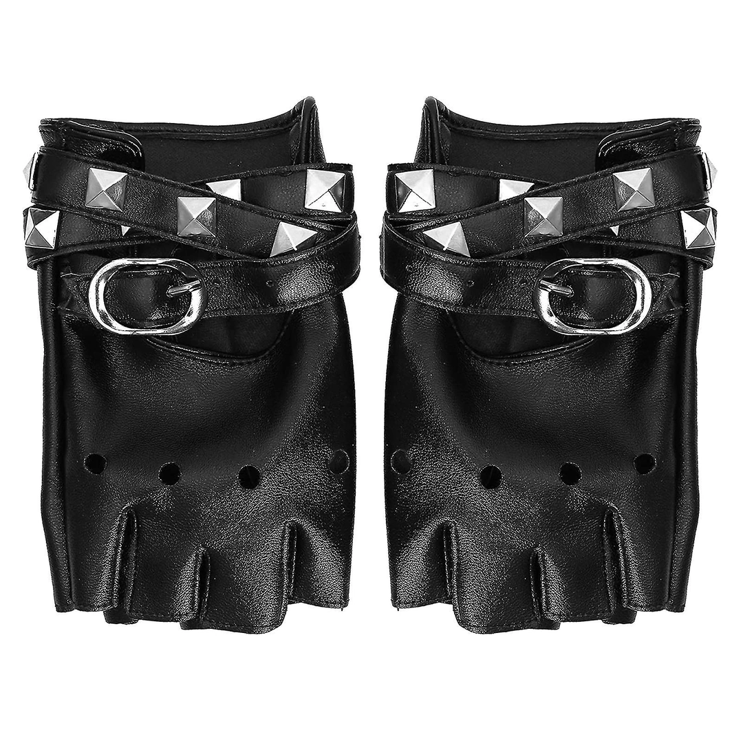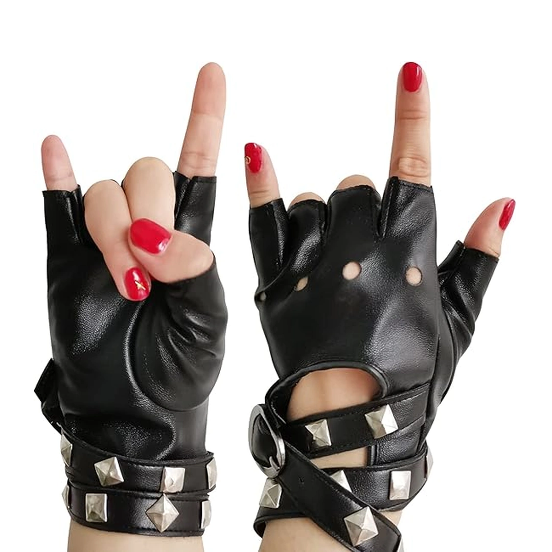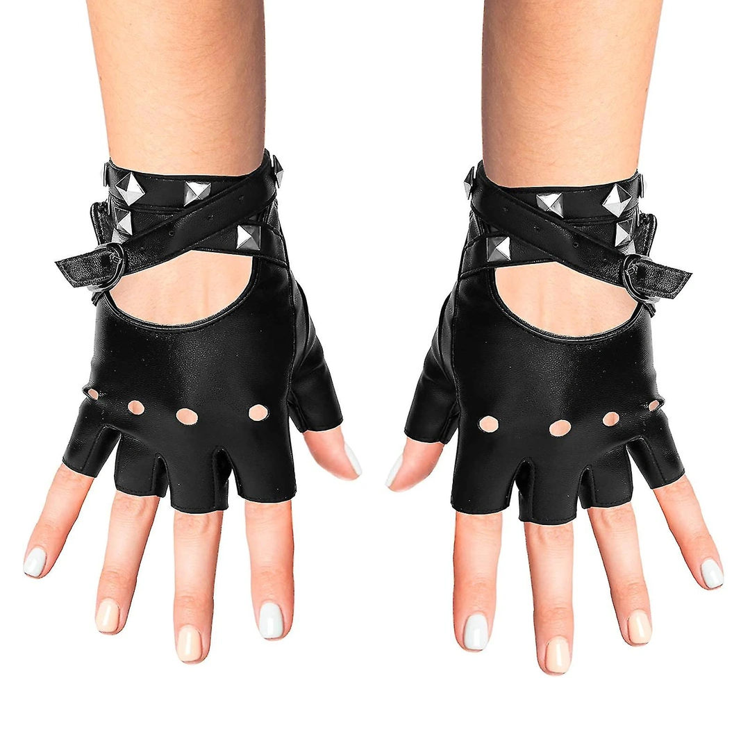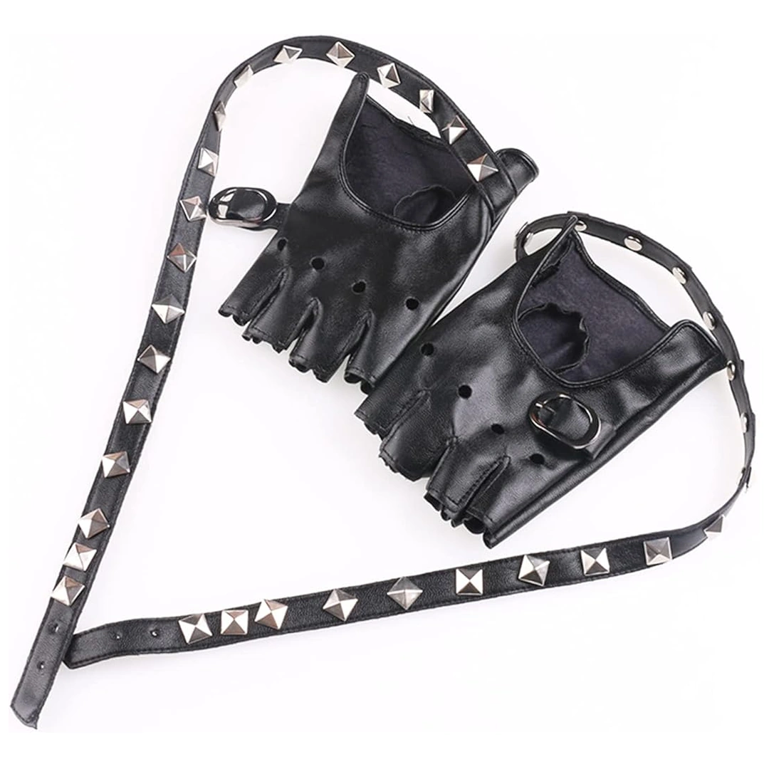 Mitaines Cuir Femme Style Punk Rock avec Sangle et Rivets