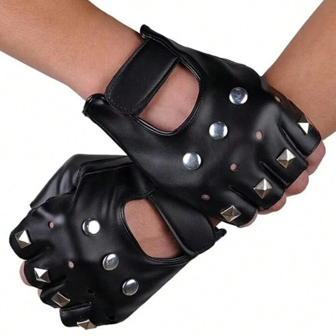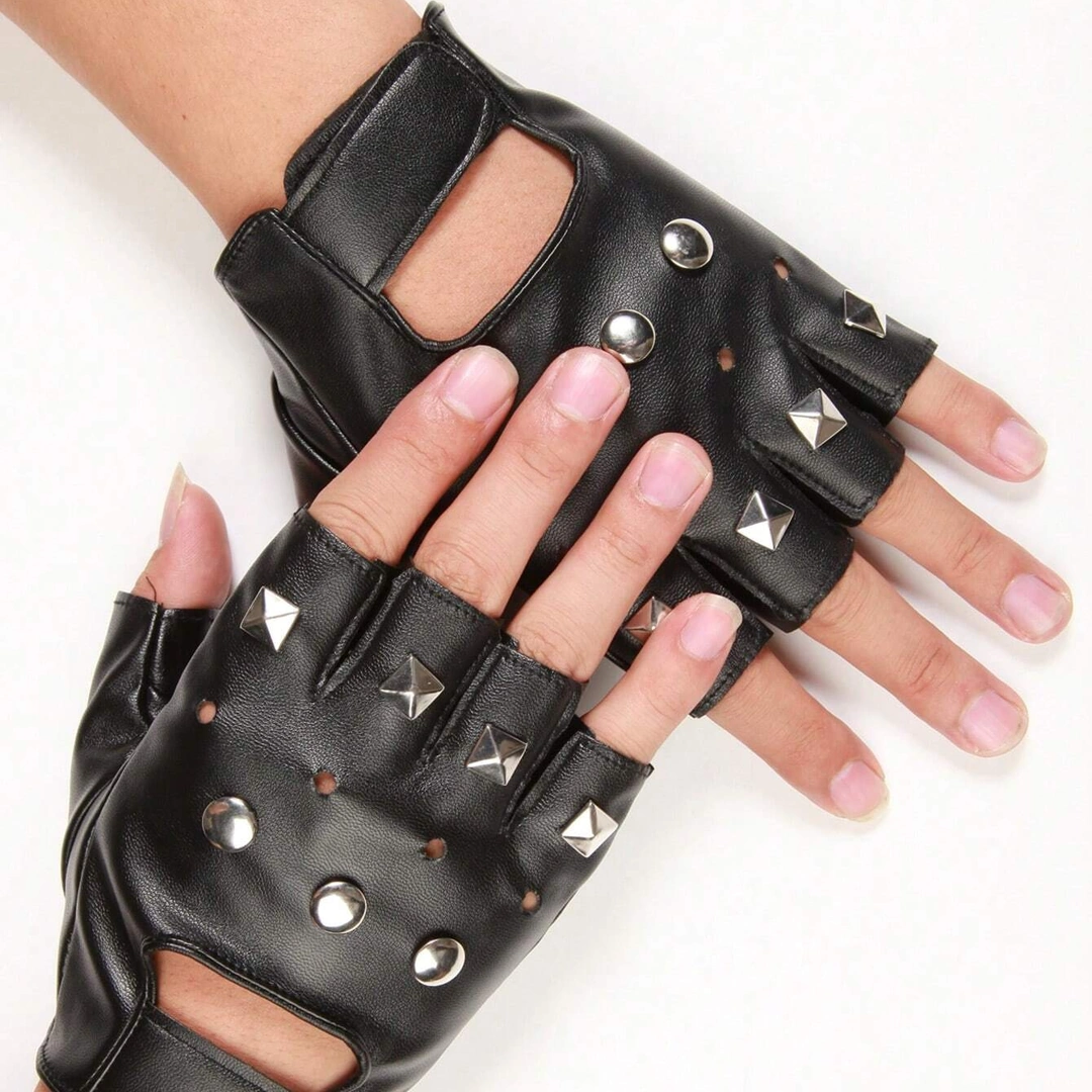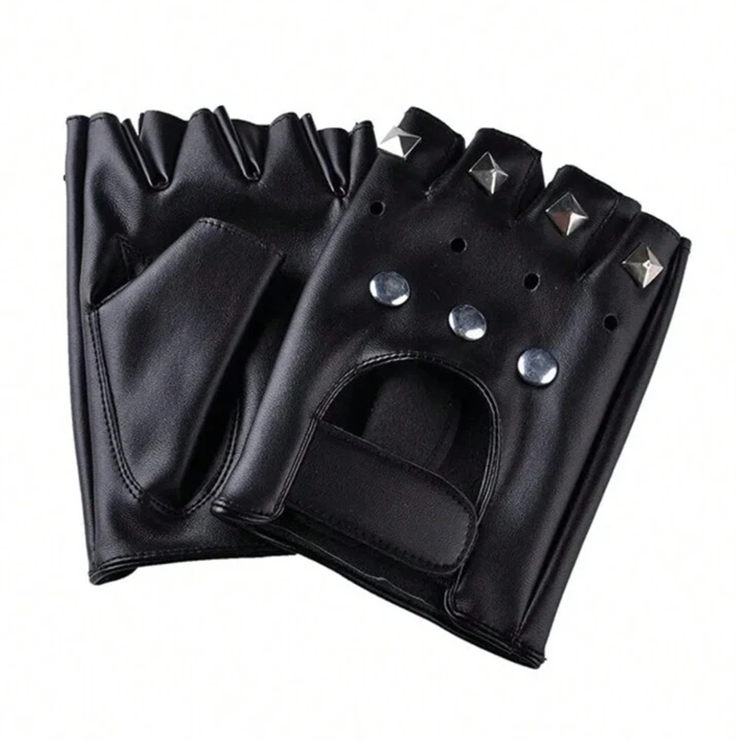 Ces mitaines en cuir PU, rehaussées de rivets sertis et d’une fermeture velcro, redéfinissent l’élégance rebelle. Taille unique, elles épousent la main avec une liberté pleine de caractère.