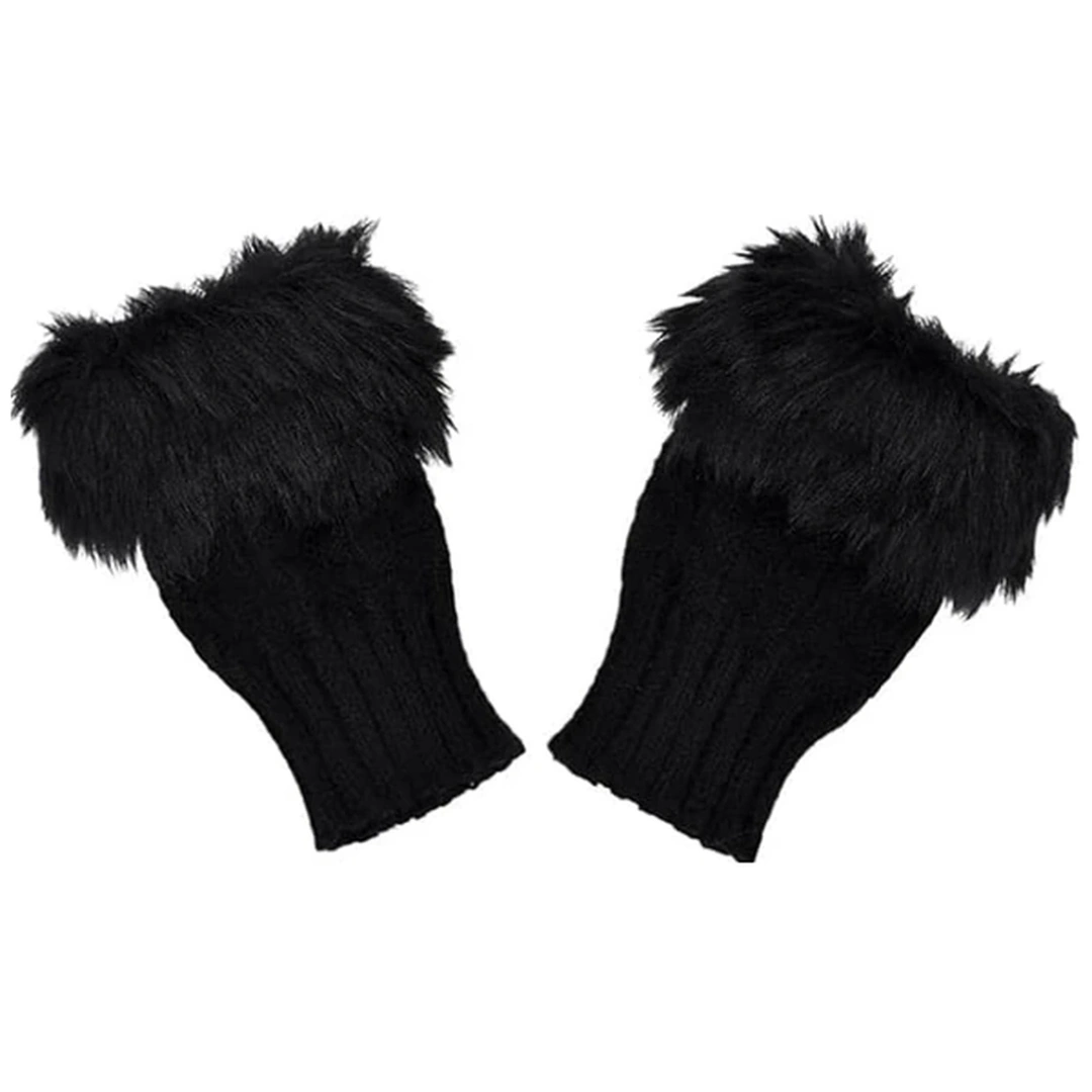 Mitaines Noires Femme Ornées de Fourrure