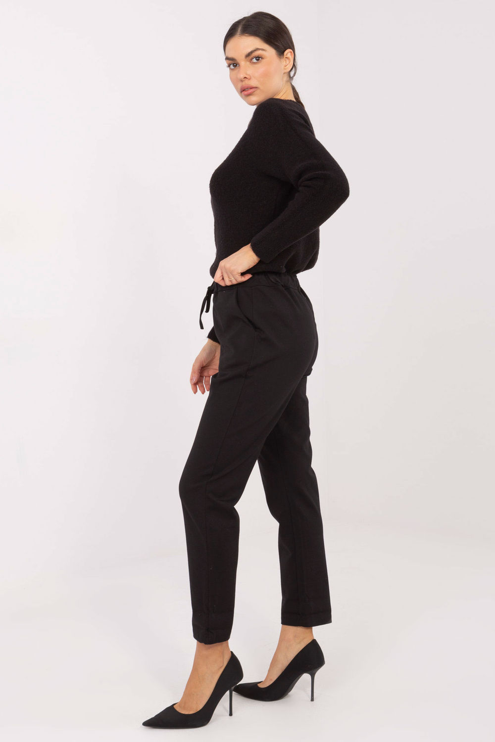 Les pantalons pour femmes en tissu de style décontracté sont une proposition confortable et polyvalente pour tous les jours. Fabriqués à partir d’un mélange de coton, d’élasthanne et de nylon de haute qualité, ils offrent confort, élasticité et durabilité. Le tissu lisse leur confère un caractère intemporel, facile à assortir à différents styles. Le modèle à taille haute souligne joliment la taille et assure un ajustement confortable. Les jambes fuselées longueur 7/8 donnent aux pantalons un look moderne et allongent optiquement la silhouette. La ceinture à nouer permet un ajustement individuel, et les poches pratiques sur les côtés augmentent la fonctionnalité. Ces pantalons conviennent parfaitement aux tenues quotidiennes, que ce soit avec un chemisier, un pull ou un sweatshirt de sport.