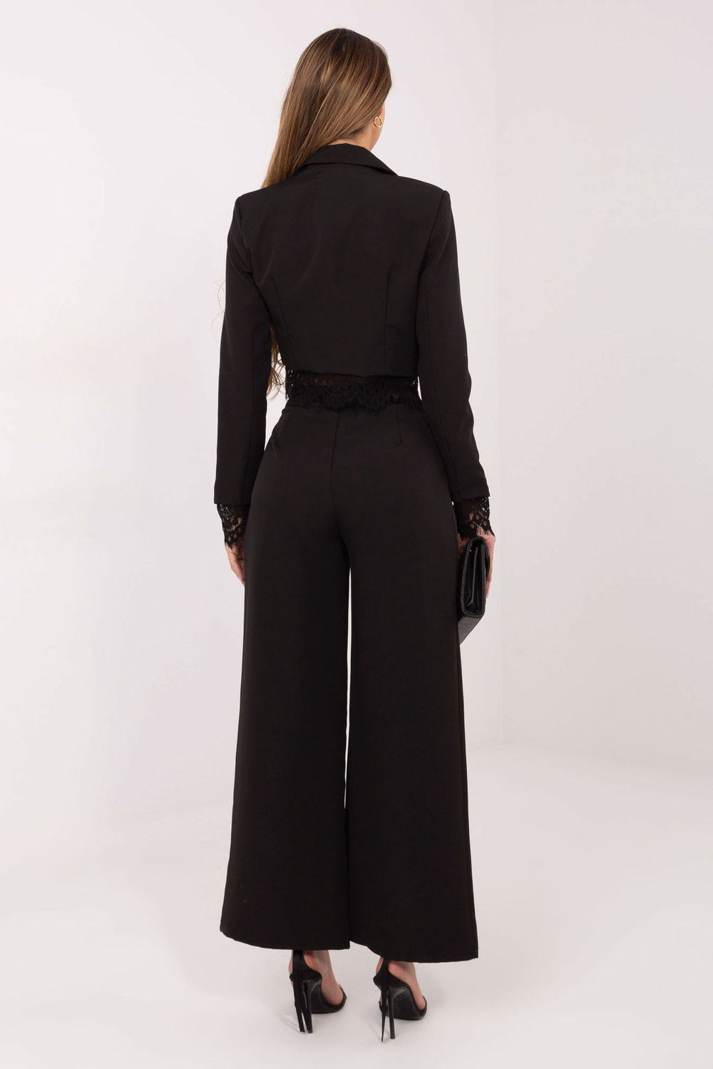 Les élégants pantalons pour femmes de type palazzo sont un excellent choix pour tous les jours, pour le travail et pour des occasions plus habillées. Fabriqués en polyester de haute qualité avec une touche d’élasthanne, ils offrent un confort de port, une durabilité et une légère élasticité qui permet une liberté de mouvement. Le tissu lisse leur confère un caractère classique et intemporel. Le modèle à taille haute souligne joliment la taille et allonge visuellement la silhouette, tandis que les jambes longues et larges donnent légèreté et élégance à la tenue. Les pantalons se ferment avec une fermeture éclair et des boutons, garantissant un bon ajustement. Les poches latérales pratiques augmentent la fonctionnalité et le confort d’utilisation. Ils se marient parfaitement aussi bien avec une chemise et un blazer qu’avec un haut plus décontracté.