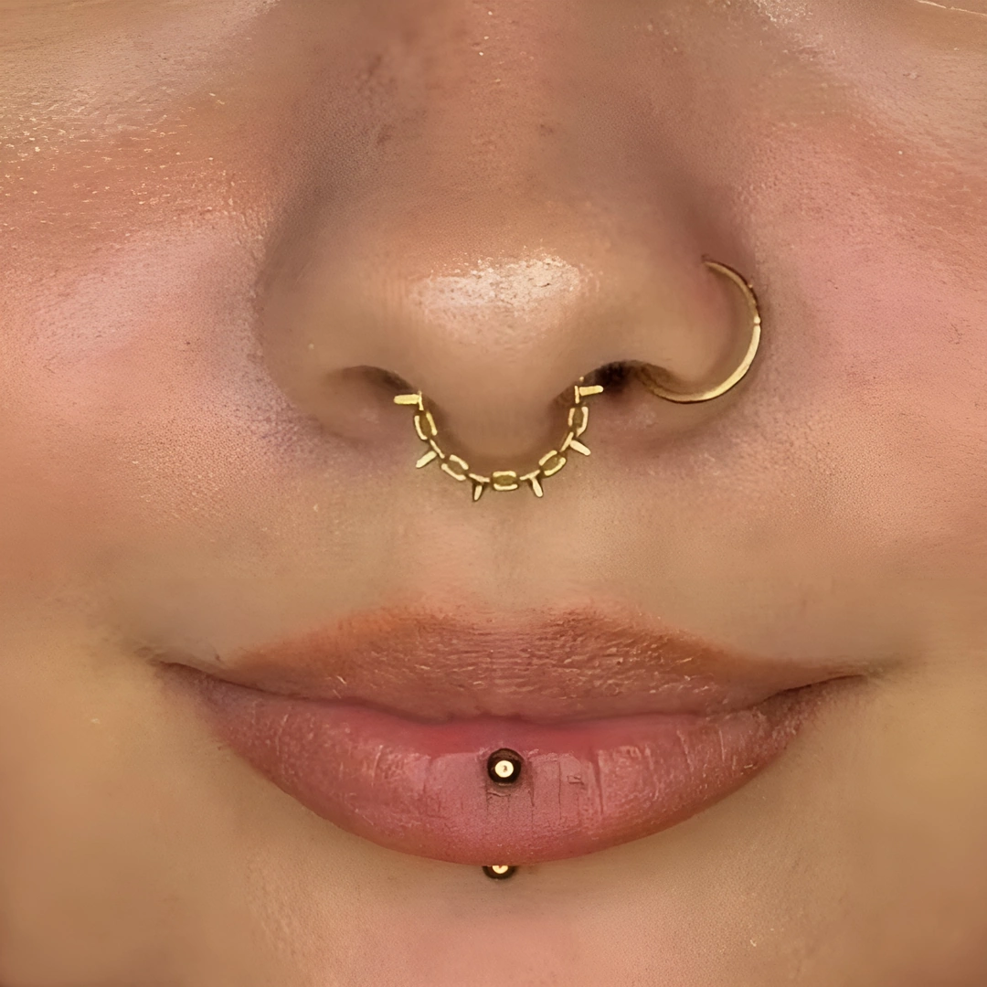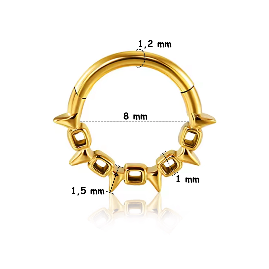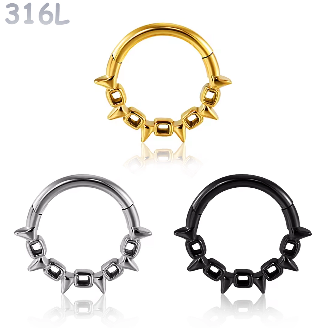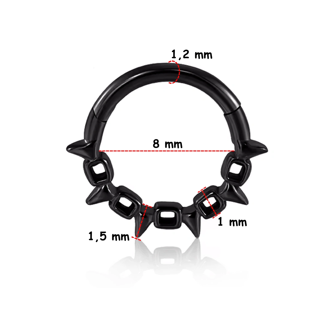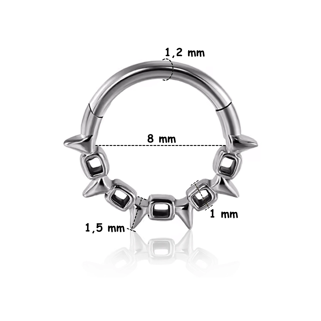 Anneau clicker en acier chirurgical 316L, orné d’une chaîne à pointes fines. Idéal au septum, daith, hélix ou orbital, pour un style audacieux et raffiné.
