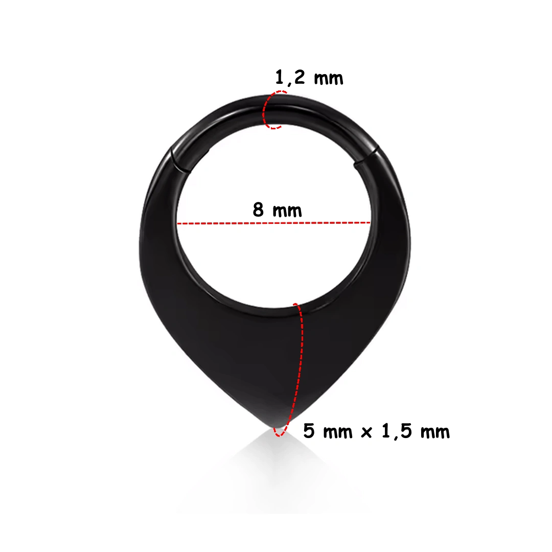 Disponible en acier chirurgical 316L poli, en noir intense ou en doré éclatant grâce au traitement PVD, il allie résistance, brillance durable et confort hypoallergénique. Son système à charnière pratique (1,2 mm d’épaisseur) et son diamètre interne de 8 mm assurent une pose simple et sécurisée.