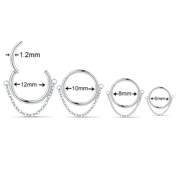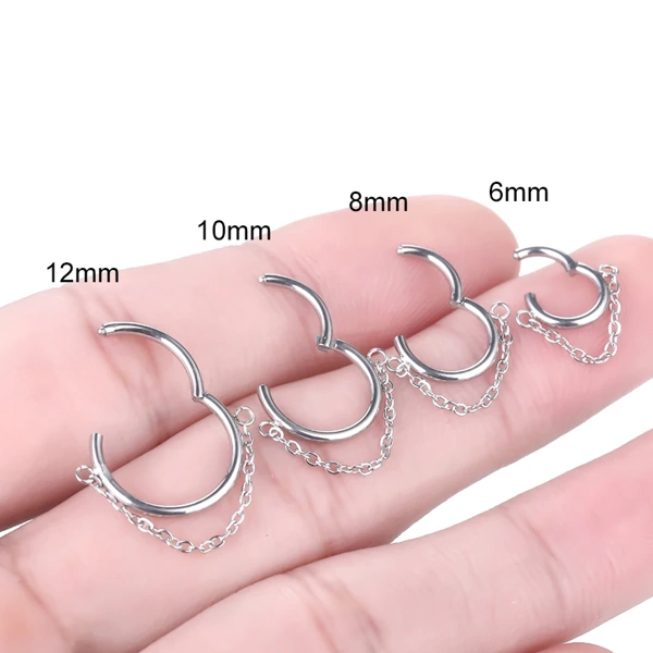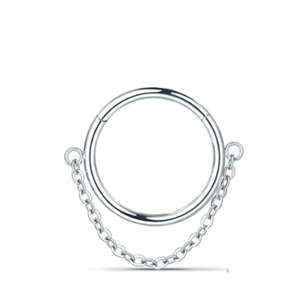 - Design : Anneau à charnière orné d’une chaînette délicate qui pend, ajoutant une touche de mystère.