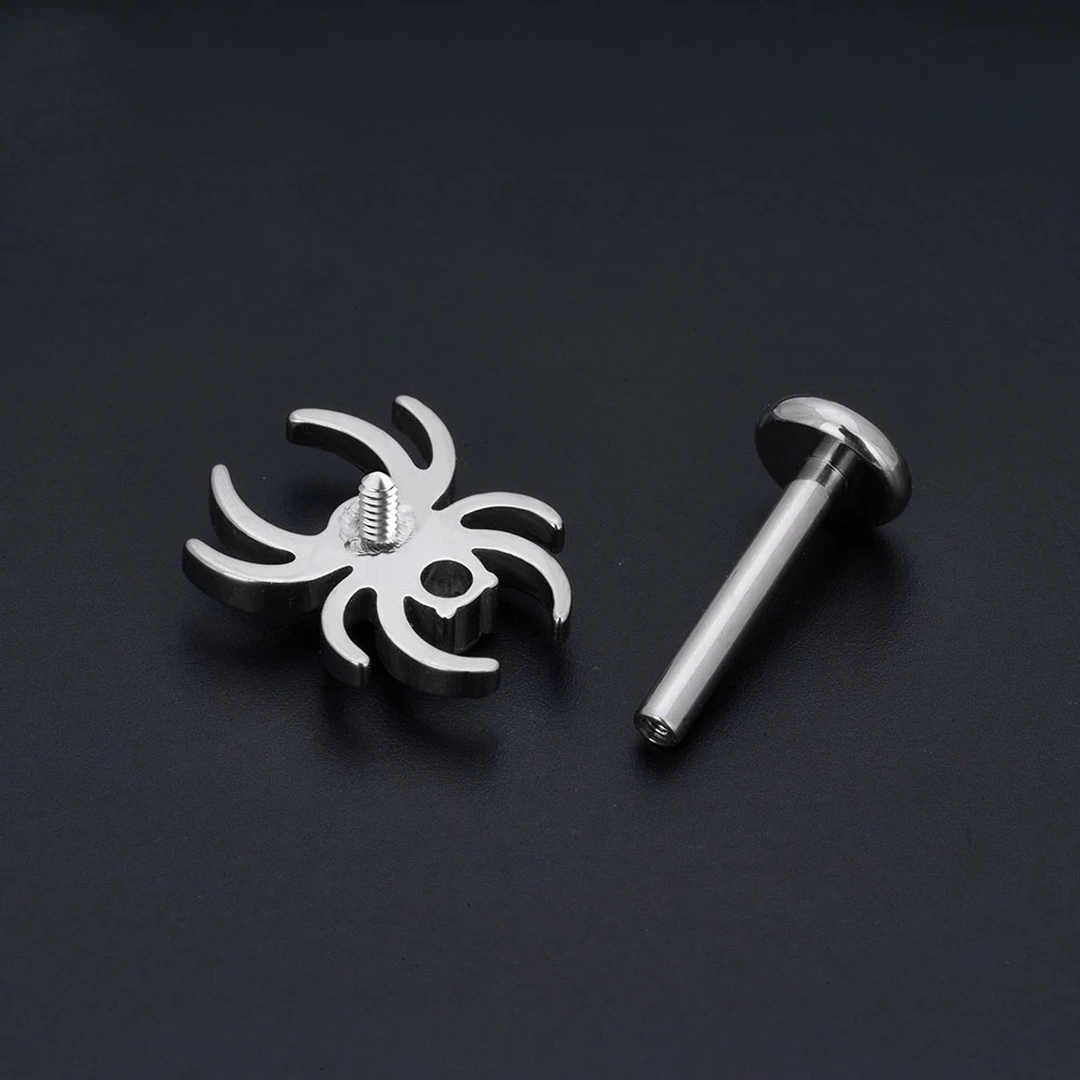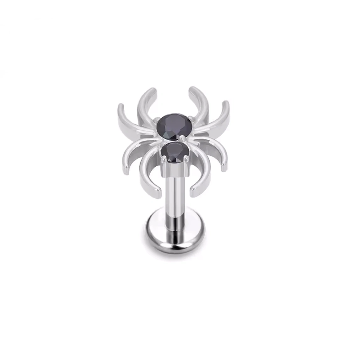 Un design précis, des matériaux irréprochables : ce labret araignée concentre tout ce qui fait un bon piercing.