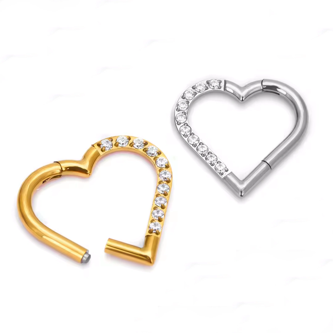 Ce piercing en titane ASTM-F136, matière biocompatible par excellence, incarne l’équilibre entre délicatesse et caractère. Son design asymétrique révèle un cœur partiellement pavé de zircons cubiques étincelants, que vous pouvez choisir sur la moitié gauche ou droite selon le rendu souhaité.