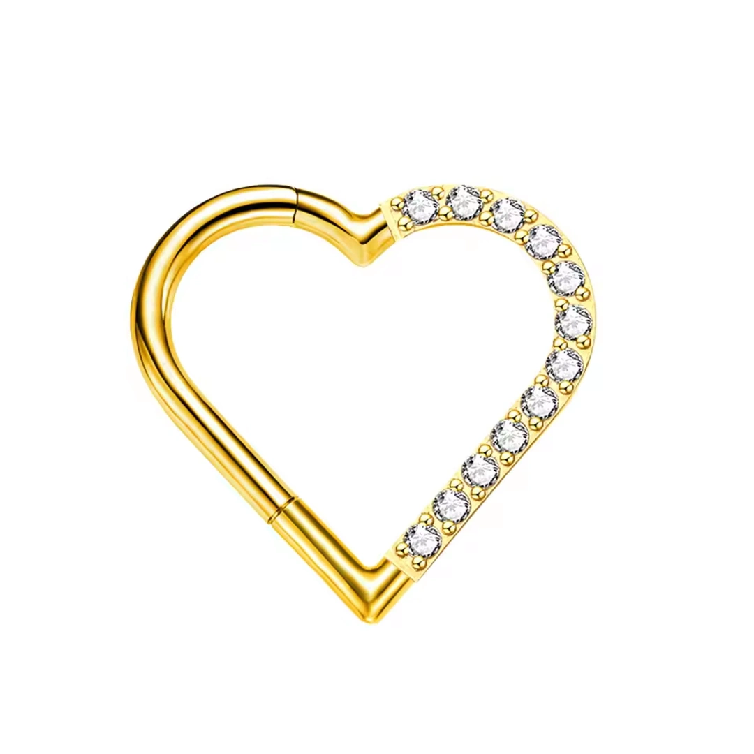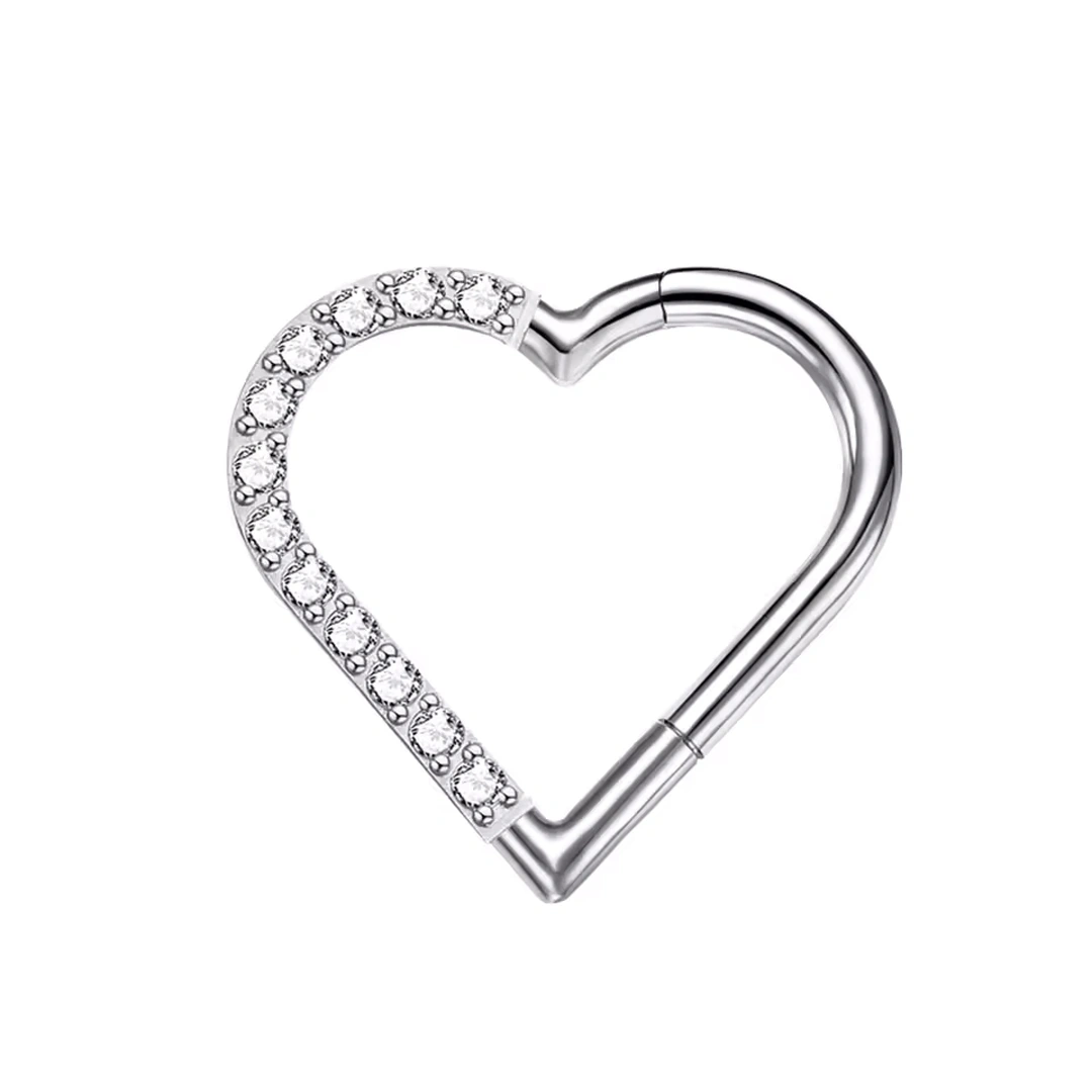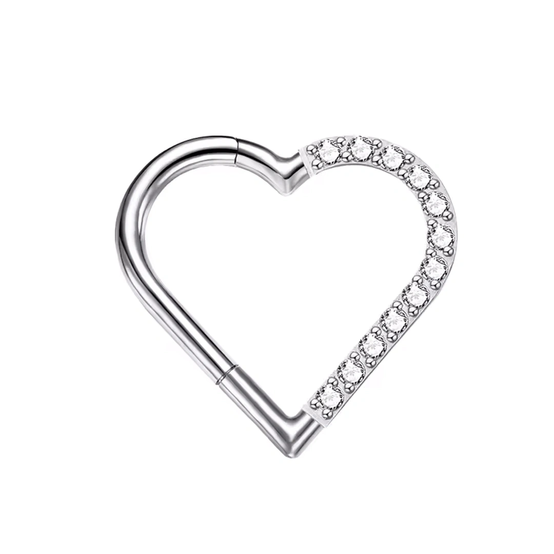 Un cœur asymétrique et rayonnant, orné de zircons sur sa moitié gauche ou droite — pour magnifier daith ou tragus avec subtilité et éclat.