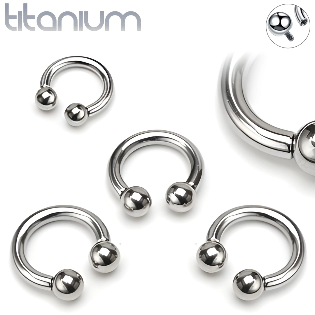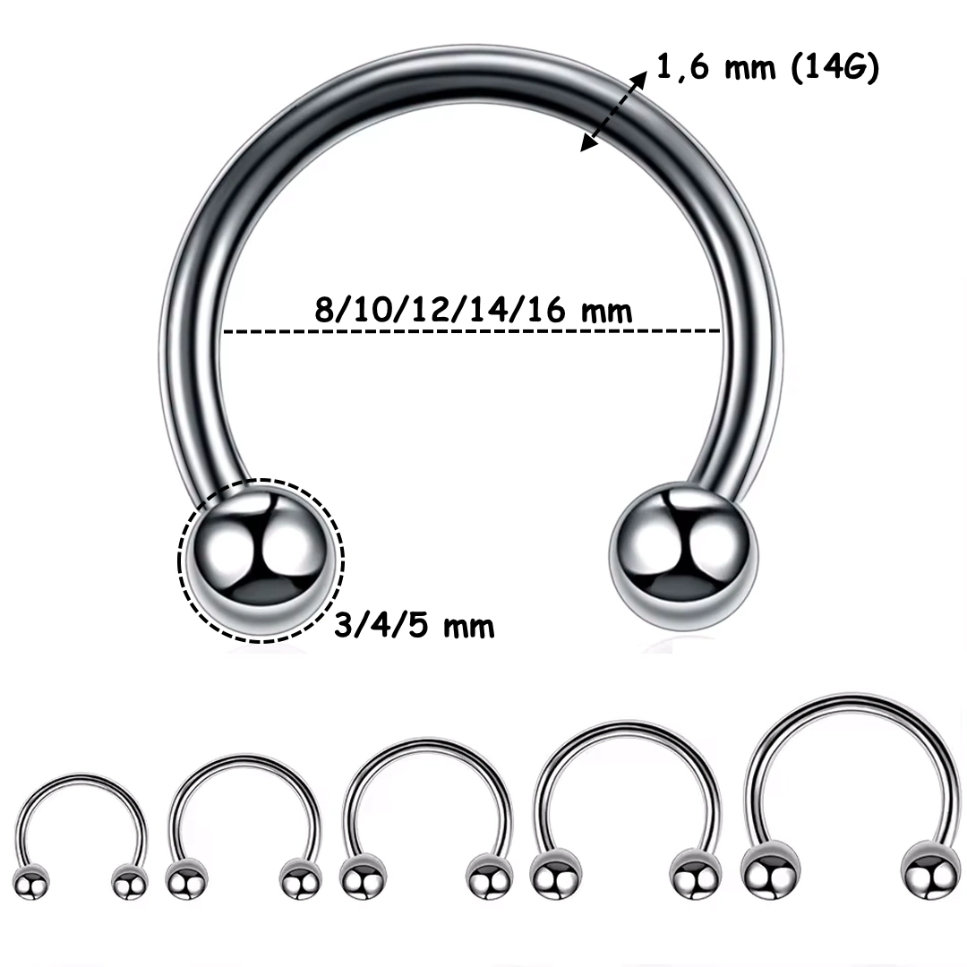 Fer à cheval en titane ASTM-F136, 14G, à filetage interne. Diamètre 8-16 mm, boules vissées. Léger, sûr et intemporel pour septum, smiley, daith, rook ou hélix.