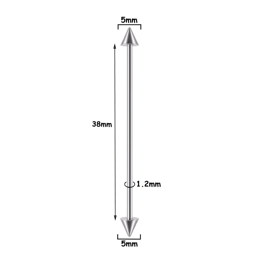 Affirmez votre style avec ce piercing industriel en acier chirurgical, orné de deux spikes de 5 mm, pour une esthétique audacieuse et sophistiquée. Vendu à l’unité