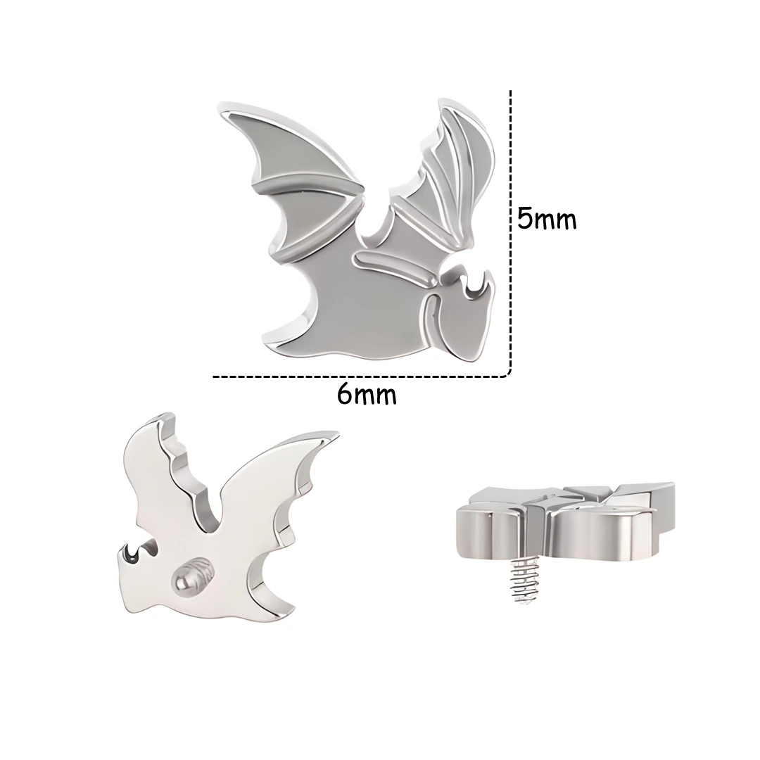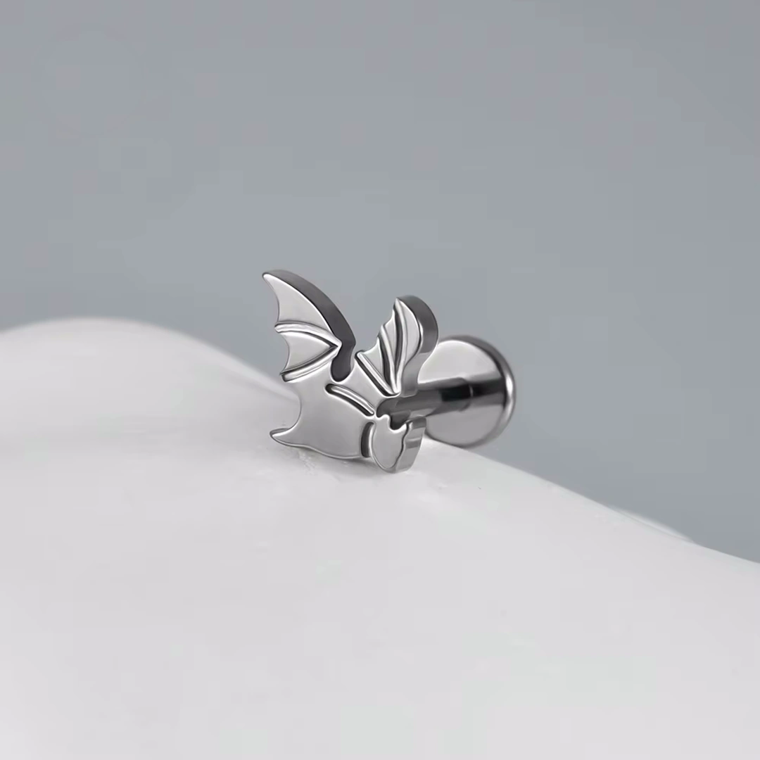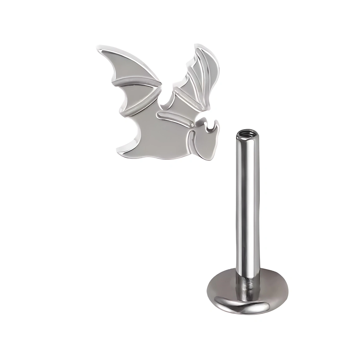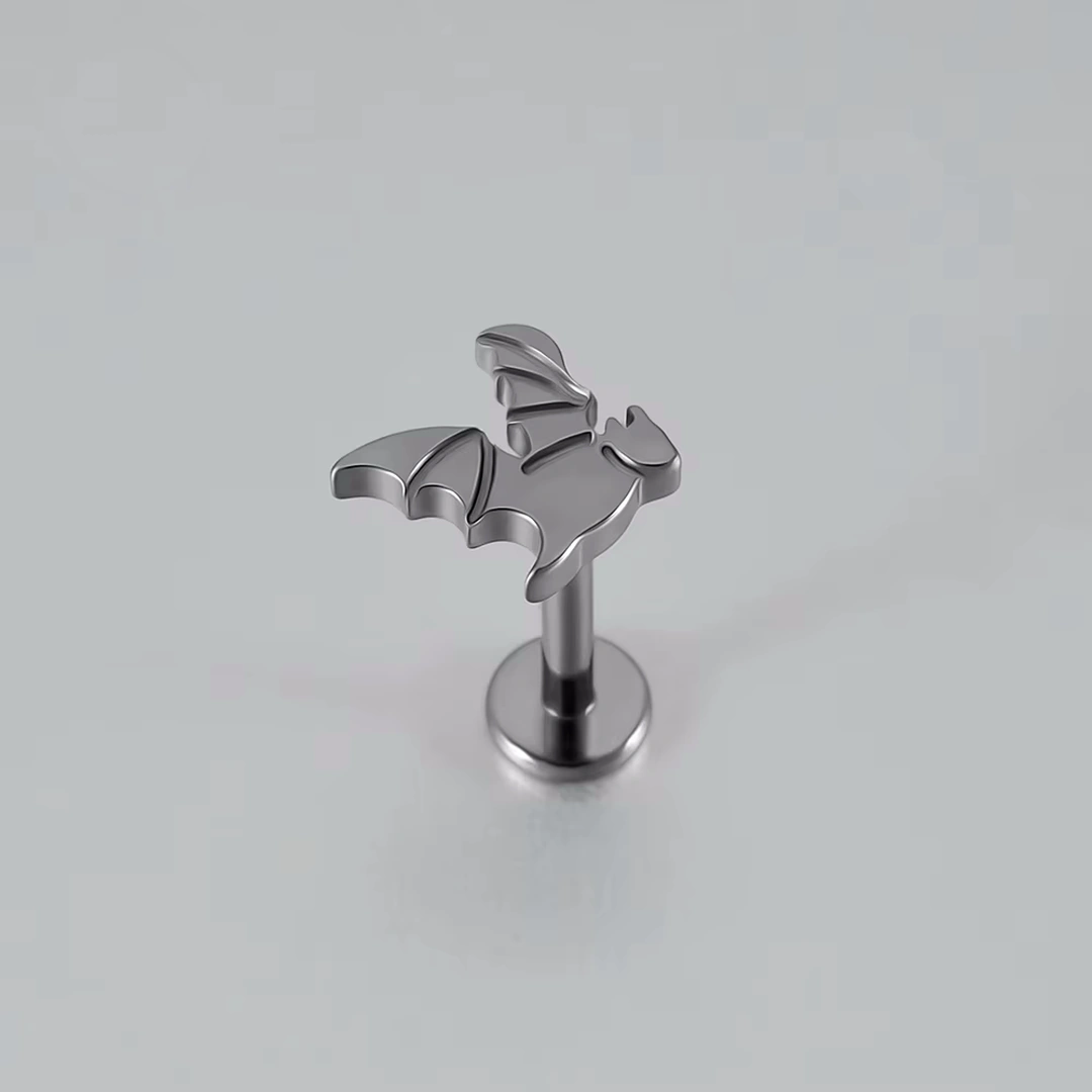 Dans l’obscurité des nuits étoilées, une silhouette gracieuse fend le ciel : la chauve-souris, gardienne discrète et élégante des songes. Inspiré de cette créature fascinante, ce piercing labret en titane célèbre l’audace et la beauté mystérieuse.