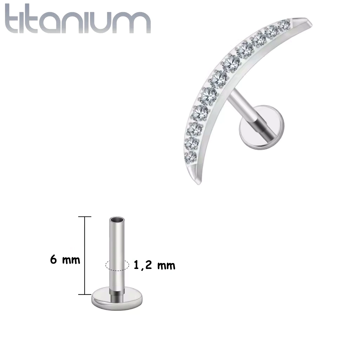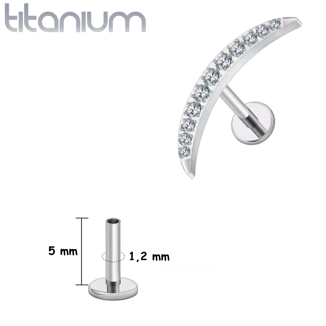 Piercing Labret Courbé en Titane Pavé de Zircons Griffés