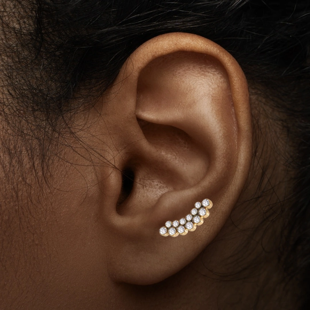 Une pièce qui combine éclat, finesse et polyvalence — parfaite pour sublimer le piercing hélix, tragus, conch, lobe, flat ou encore rook selon anatomie.