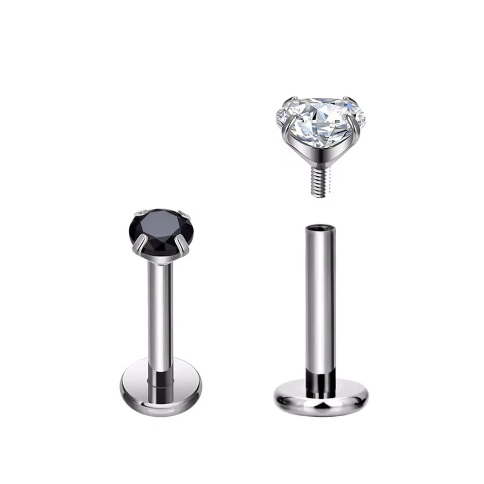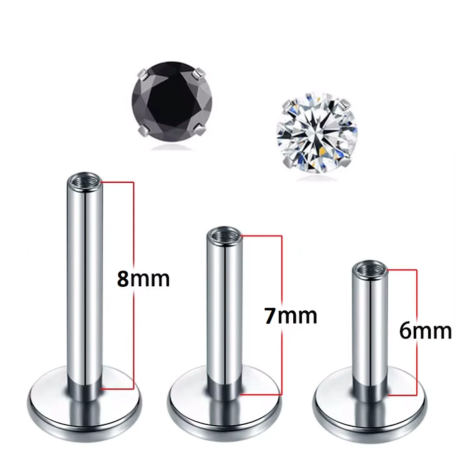 Piercing Labret en Titane avec Zircon, Noir ou Blanc