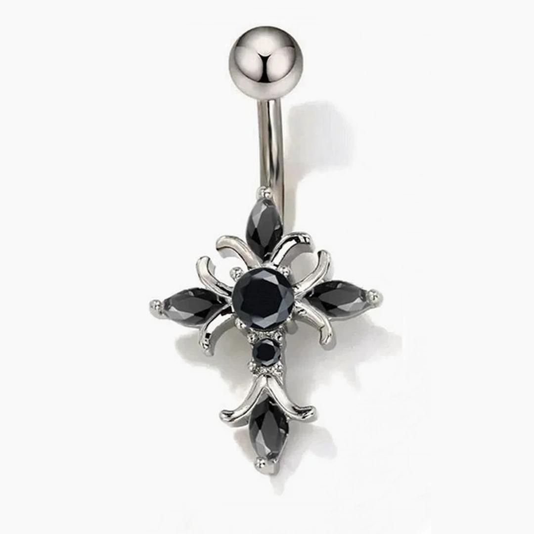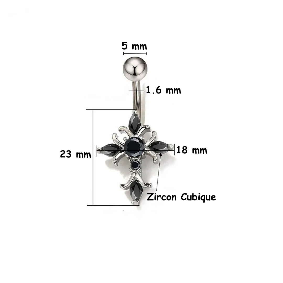 Piercing Nombril Croix Sertie de Zircons Noirs