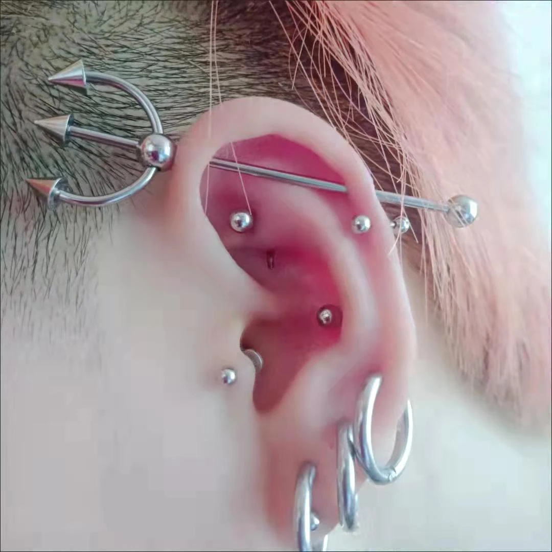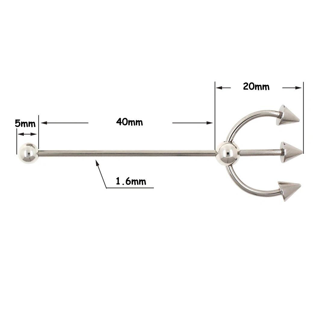 Piercing Oreille Barbell Industriel Trident en Acier Chirurgical