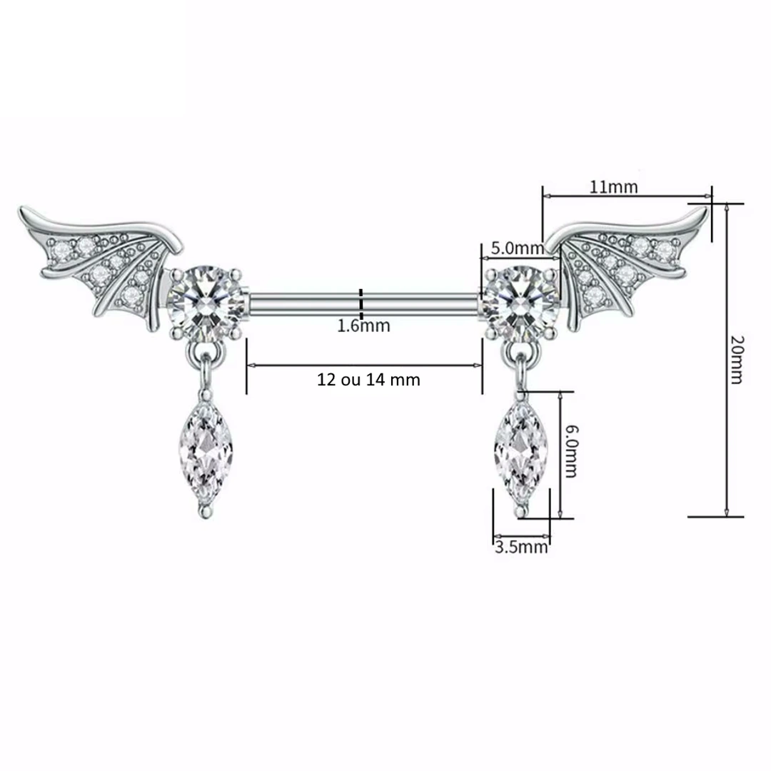 Piercing Téton à Ailes d’Anges Serties et Zircons Marquise