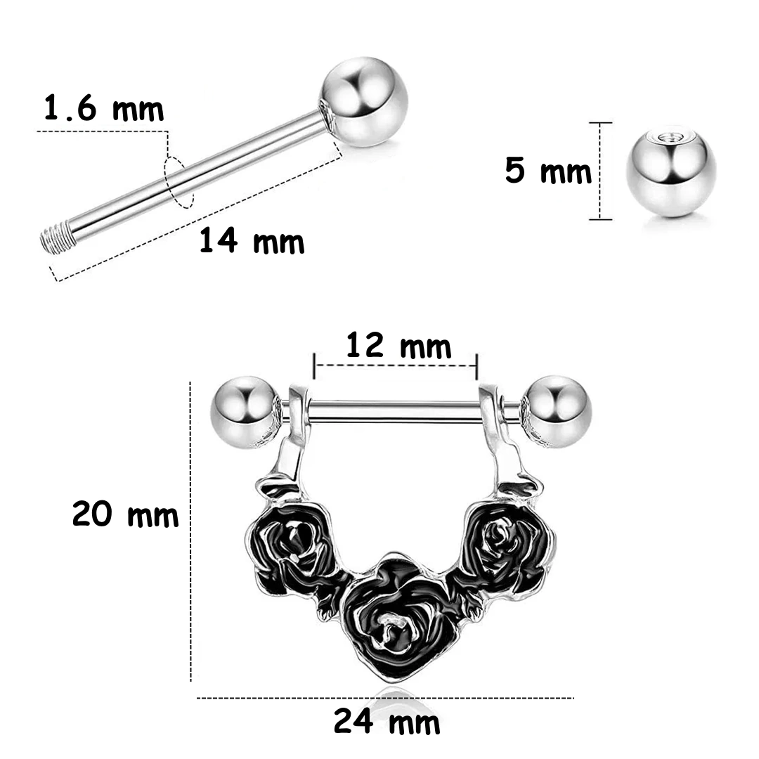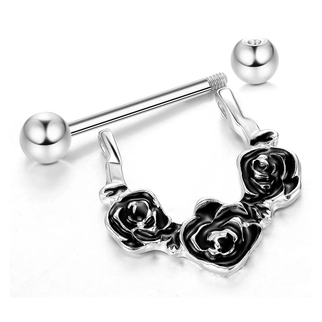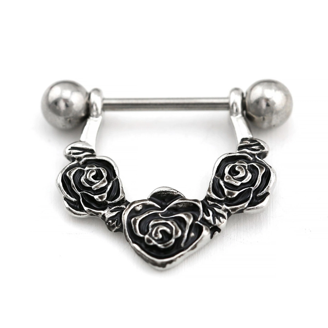 Piercing Téton Arc de Roses Noires en Acier Chirurgical 316L