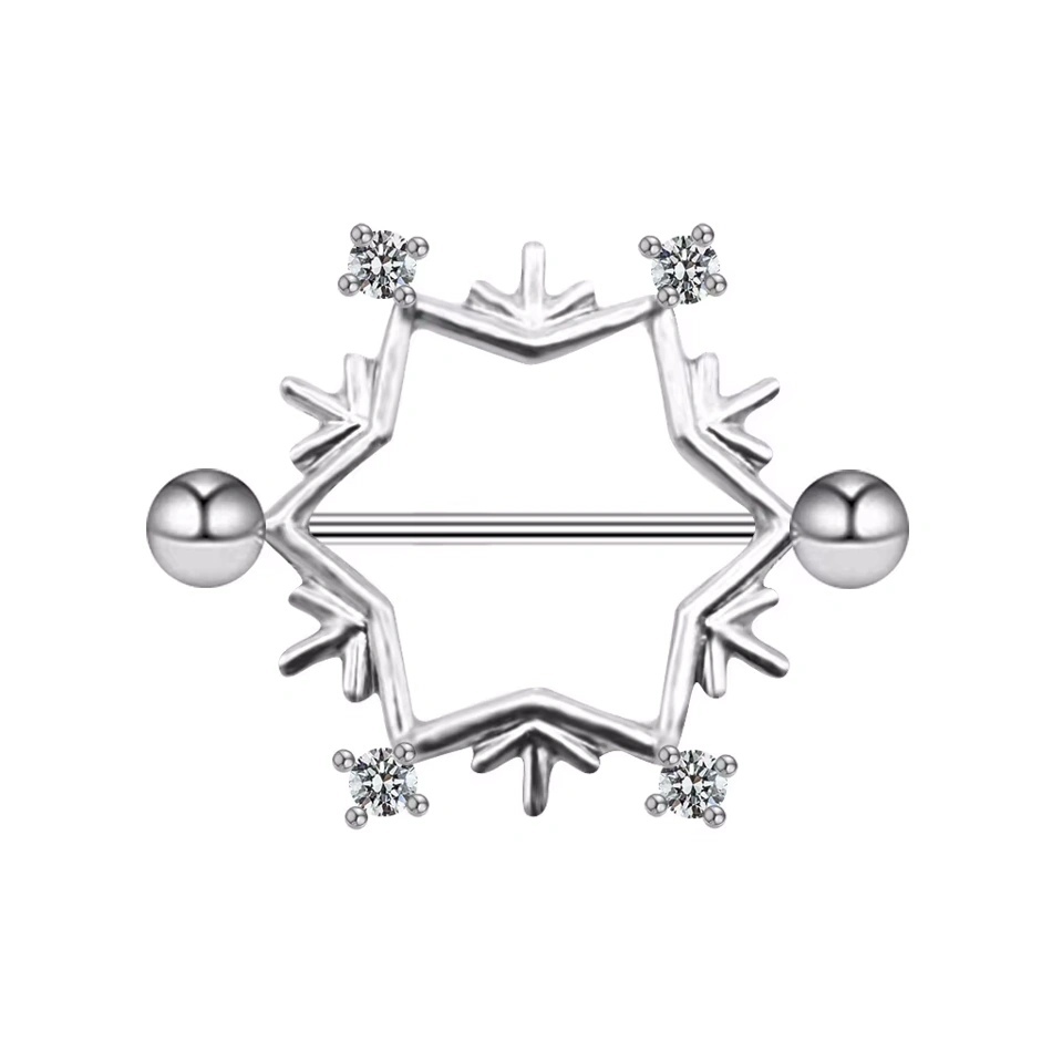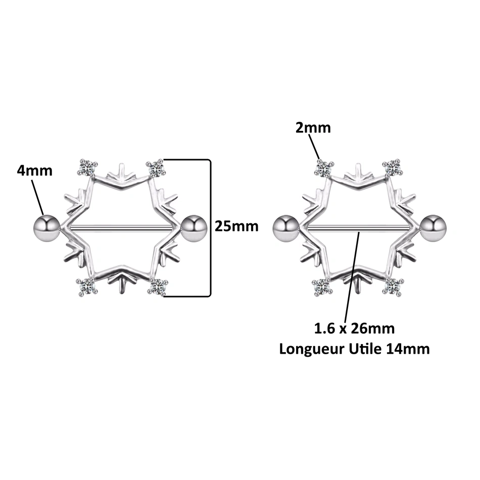 Piercing Téton Barbell Flocon en Acier avec Zircons