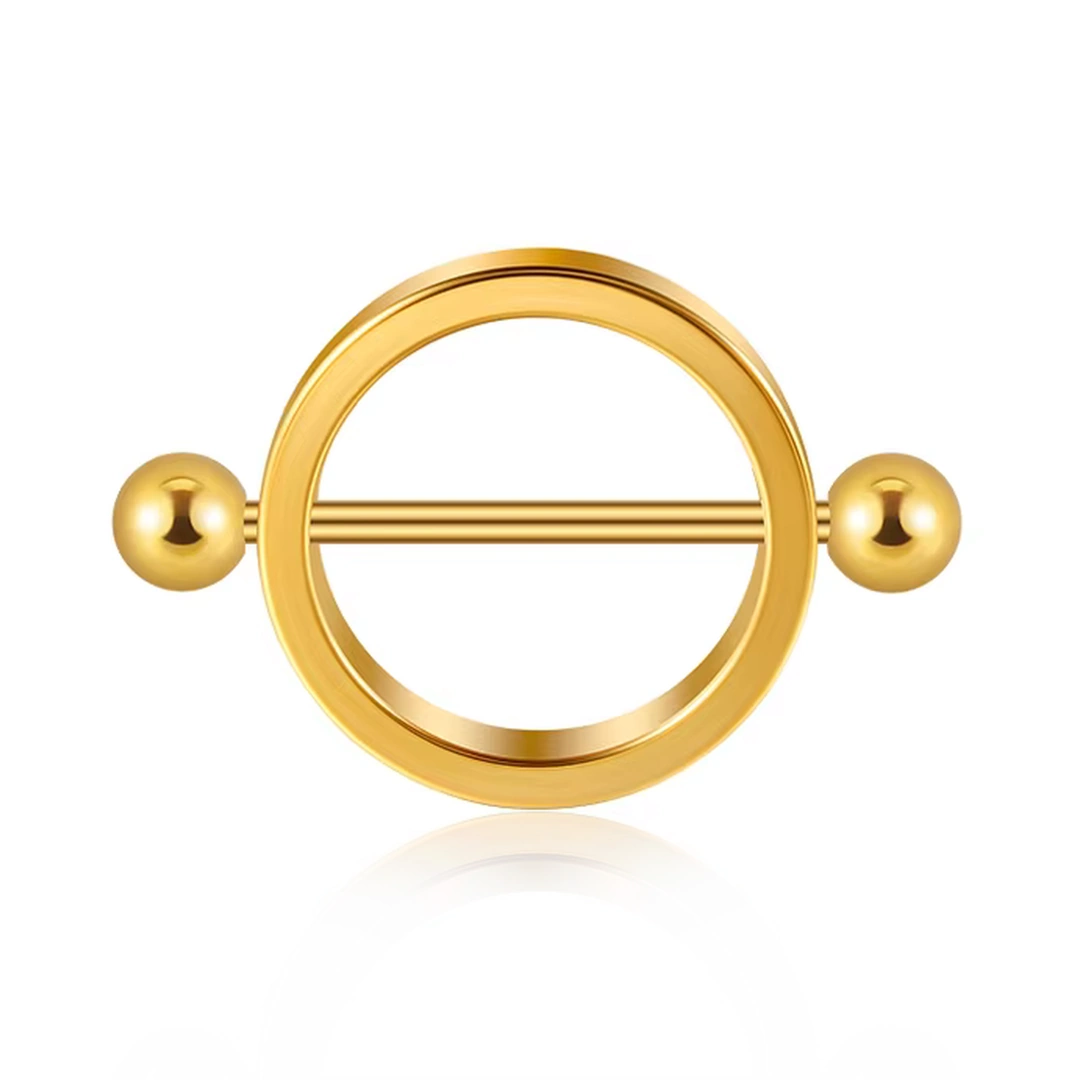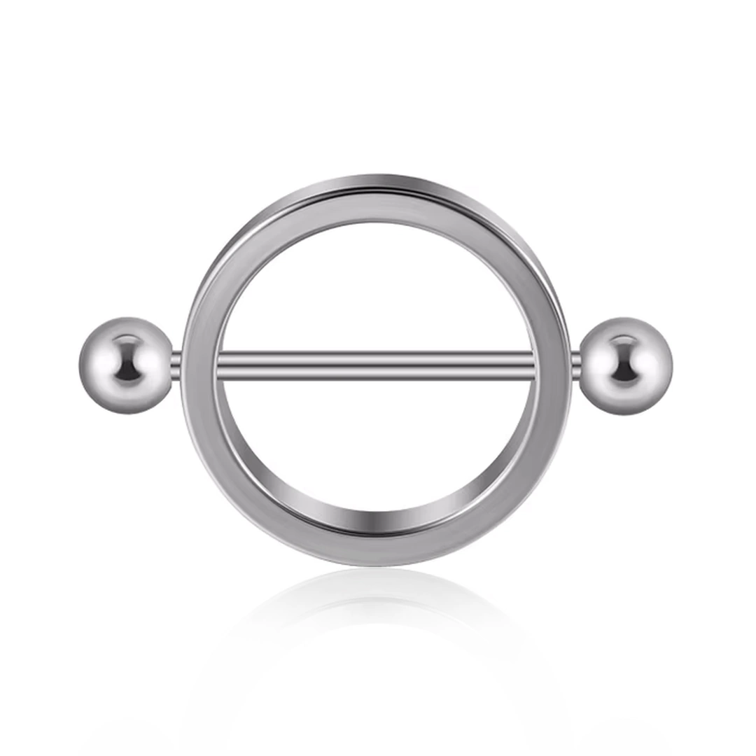 Piercing Téton Bouclier Circulaire avec Barre Traversante