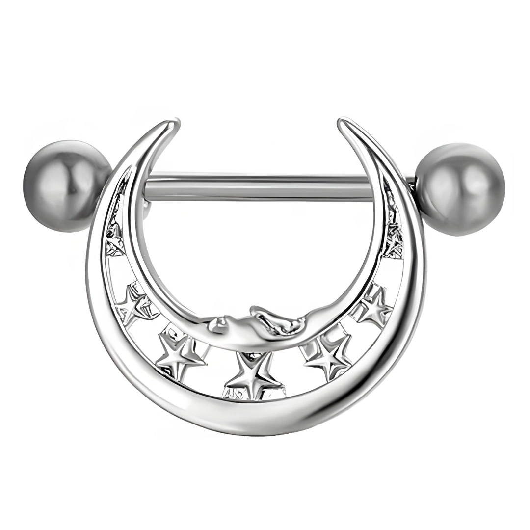 Piercing Téton Croissant de Lune Constellé d’Étoiles