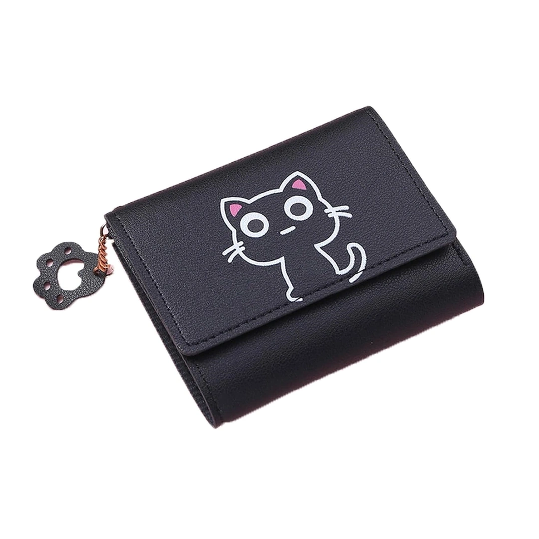 Portefeuille Femme en Cuir Noir Motif Chat