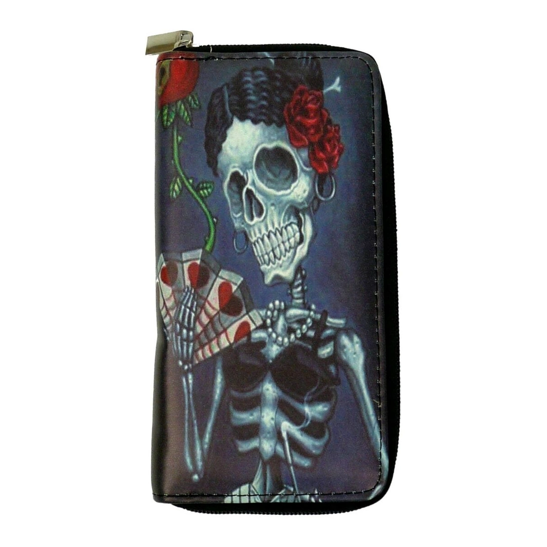 Portefeuille Gothique en Cuir Grand Format Motif Femme Squelette