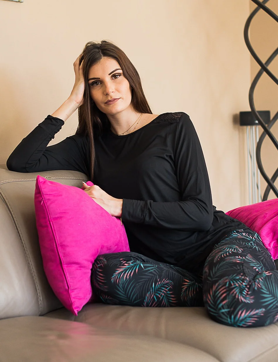 Le pyjama 100% douceur est en coton modal et avec sa note d’élasthanne, il vous comblera à coup sûr! Manches longues et col arrondi, il est idéal pour vos soirées cocooning. Confortable avant tout, il est ultra féminin avec sa touche de dentelle ajourée sur les épaules! Le mélange motif/imprimé est ultra tendance! Bleu canard ou noir, le pantalon à motif feuilles de couleur et son tee shirt manches longues uni vous ravira. Le pantalon a une coupe droite resserré à la cheville. Ceinture élastique, terminé par un cordon à nouer à la taille. Une coupe droite et plutôt près du corps mais non moulant. Régalez-vous dans notre rubrique pyjama et achetez vos sous-vêtements et tenues d’intérieur pas cher dans notre catalogue! Le pyjama 100% douceur en coton modal est d’une matière élasthanne ultra douce, et vous tiendra chaud à la maison!