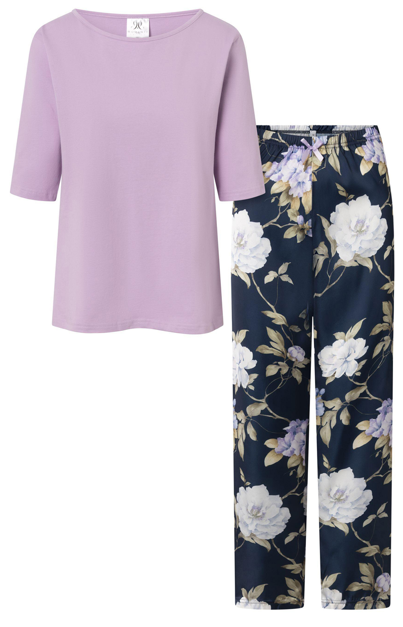Pyjama pour femme au design élégant, idéal pour la vie de tous les jours et comme cadeau. L’ensemble se compose de deux pièces : un chemisier à manches 3/4 et un pantalon long. Le chemisier a une encolure en U et sa coupe ample et confortable offre une grande liberté de mouvement et un grand confort. Le pantalon a une taille élastiquée et une coupe ample et confortable, ce qui en fait le choix idéal pour se détendre à la maison. L’ensemble du vêtement est fabriqué dans un tissu fin avec une impression de haute qualité qui reste durable. Le produit est certifié OEKO-TEX Standard 100, ce qui garantit la sécurité pour la peau. Conçu et cousu en Pologne, ce pyjama allie confort, style et qualité de fabrication.