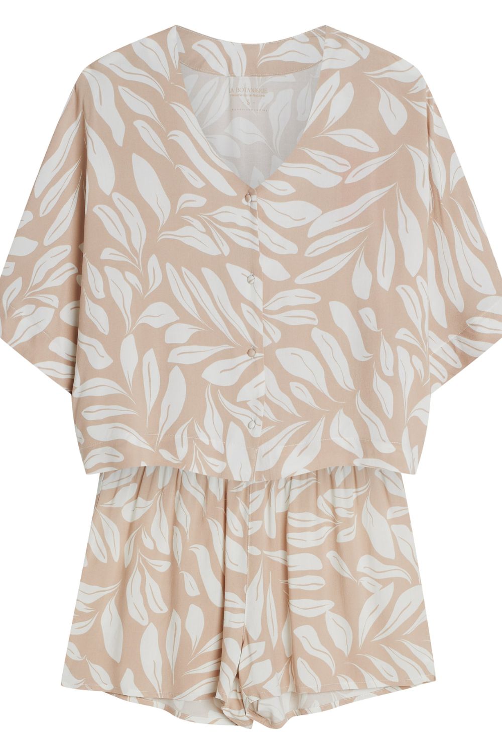 Pyjama féminine élégante et confortable est une proposition idéale pour les femmes qui apprécient le confort et un look à la mode. Le haut avec un décolleté en V, des manches 3/4 et des boutons ajoute un caractère légèrement élégant à l’ensemble et assure un confort d’utilisation. La coupe oversize garantit une liberté de mouvement et un ajustement ample et confortable. Le short assorti est parfait pour les nuits plus chaudes. Le tissu imprimé donne à la pyjama un style unique et la rend féminine et moderne. Le pyjama est emballé dans un sac en plastique pratique, ce qui en fait également un excellent cadeau.