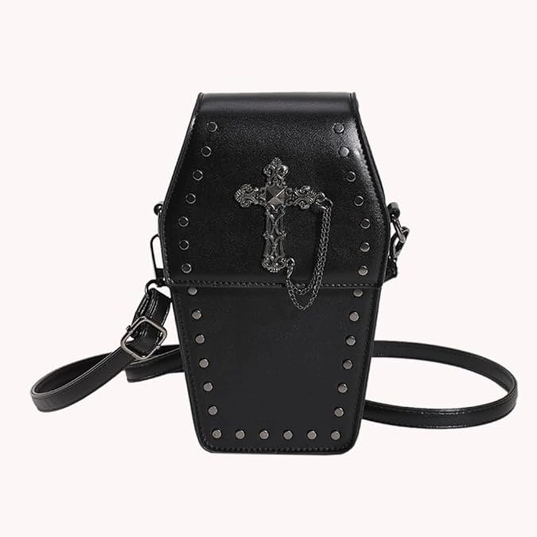 Sac Bandoulière en Cuir Femme Gothique Forme de Cercueil