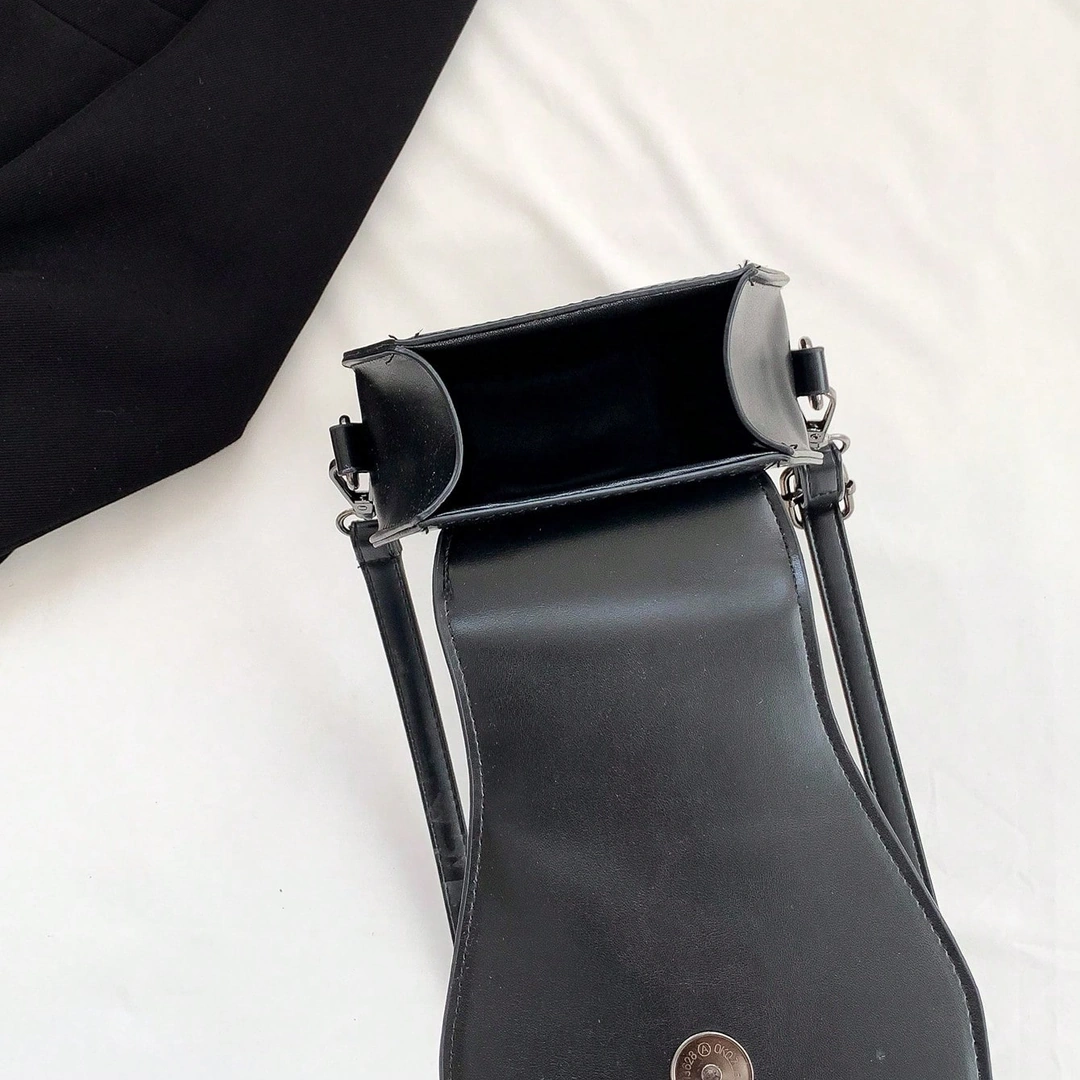 Ce sac noir à bandoulière en cuir PU, doublé de polyester, séduit par sa silhouette singulière en forme de cercueil.