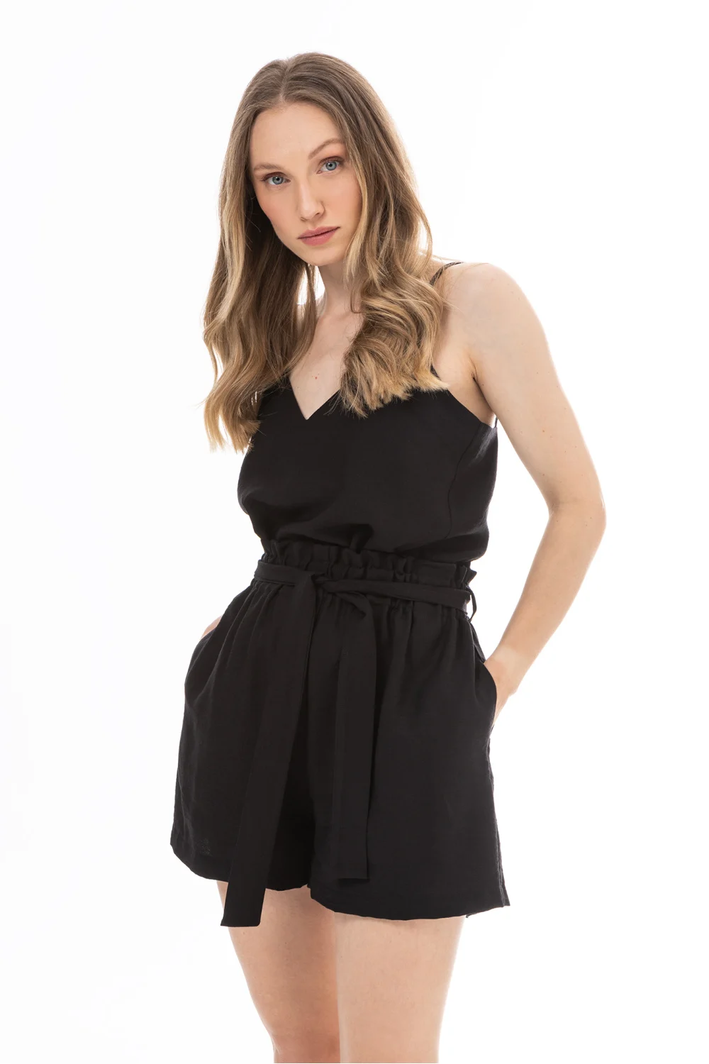 Un top léger à fines bretelles est une excellente base pour les tenues estivales. Le décolleté en V met subtilement en valeur le cou et le décolleté, donnant à l’ensemble un caractère féminin. La coupe décontractée épouse doucement la silhouette, offrant un confort de port, et le tissu lisse avec une finition satinée ajoute de l’élégance. Ce modèle se portera aussi bien seul qu’associé à une veste, une chemise ou un pull.