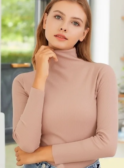 Tricot shapewear manches longues et son joli col roulé. Jolie maille extensible unie pour un doux confort sous vos vêtements. Doux coloris rose poudré.