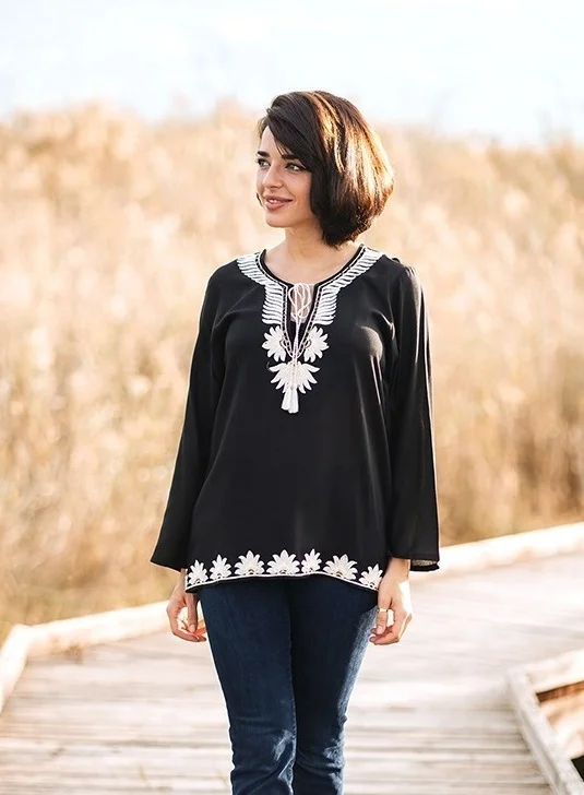 Je craque pour la tunique bohème chic noire brodée de la marque espagnole Isla Bonita! Elle est ultra fashion et vous donnera du style! Portez là dés les premiers jours du printemps! Du S (36) au XL (42)
