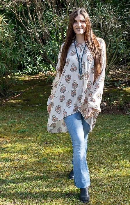 On craque pour la tunique imprimée aux motifs tête de mort OVERSIZE! Ouverture col à boutons pour un décolleté que vous ajusterez vous-même! Motifs tête de mort éparses au doux motifs léopard noirs et blancs. Une superbe originalité pour la saison! Et…si vous êtes fan…vous craquerez à coup sûr! Manches longues fermeture bouton. La tunique imprimée tête de mort fera l’affaire pour un joli look ultra tendance! Son style est de la porter plutôt ample…Elle s’accorde à 100% à votre quotidien. Une matière ultra souple et ultra agréable (100% viscose)