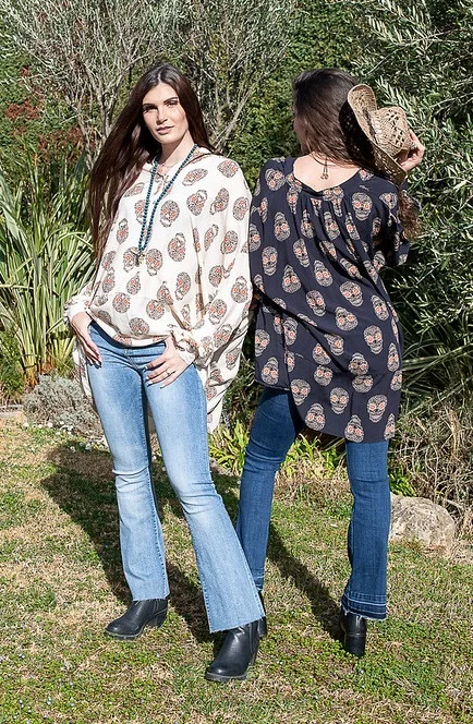 On adooooore…. la tunique aux imprimés tête de mort! Taille unique, portez la dès les premiers jours du printemps!